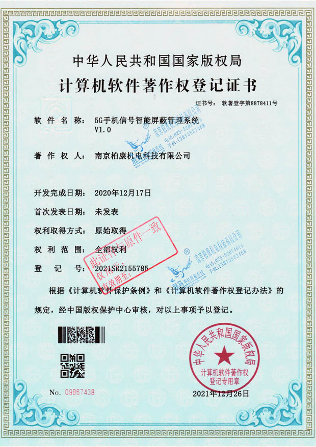 5G手机信号智能屏蔽管理系统V1.0-软著登字第8878411号